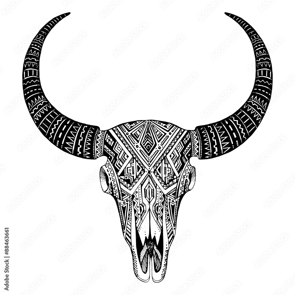 Decorative Indian Bull Skull In Tattoo Tribal Style Stock Vector Adobe Stock