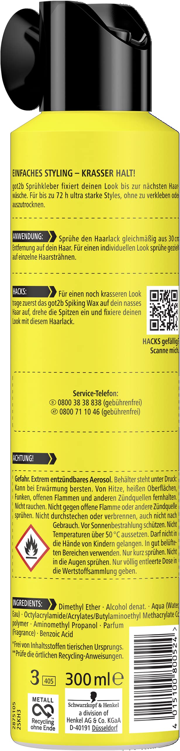 Got2b Hair Varnish Spray Glue Hold 6 300 Ml 72 H Hair Spray For Ultra Strong Hair Styles Without Sticking Or Drying Out Fixed Until The Next Hair Wash Amazon De Beauty